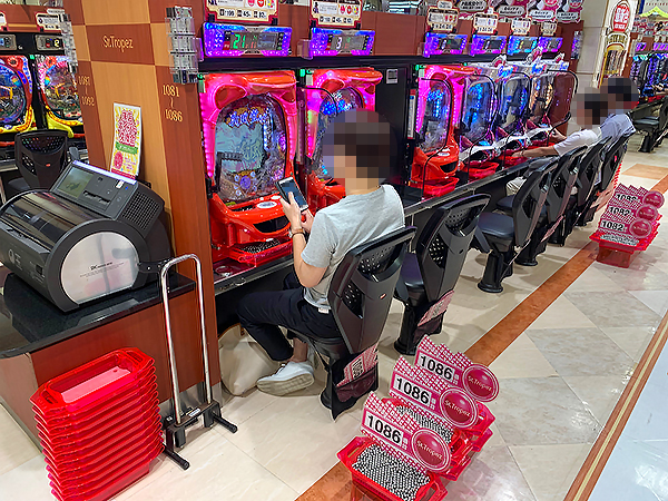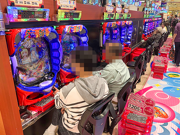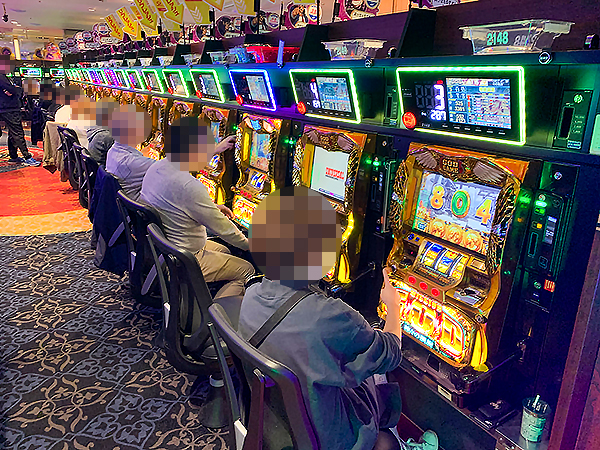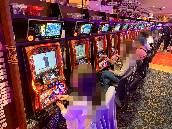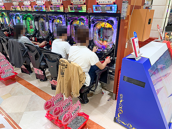 14時過ぎの4円パチンコを見てみると「CR大海物語4」や「CR真・花の慶次2〜漆黒の衝撃 2400」、「ぱちんこCR聖戦士ダンバイン」が大盛り上がり。魅力的なシーンをシマのあちこちで目にしている。