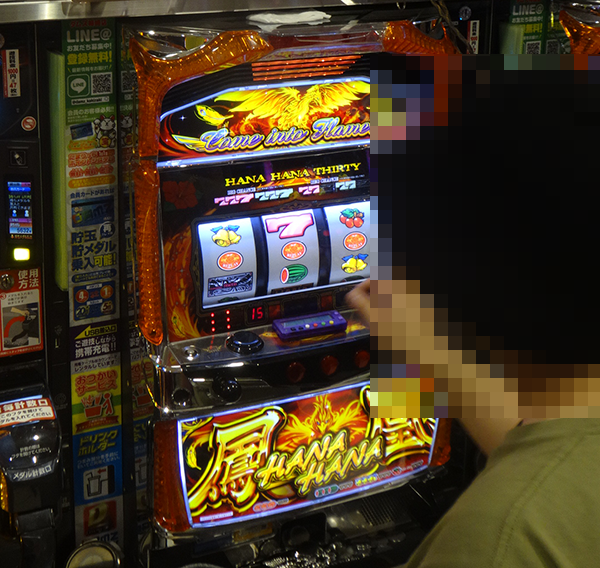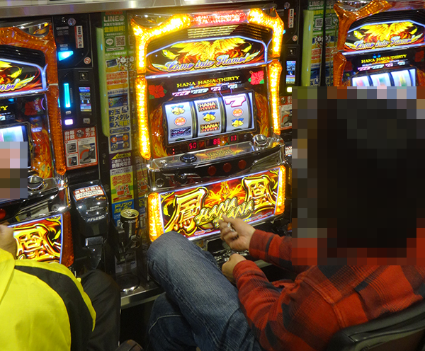 パフォーマンスを披露する姿も目立っており、とくに活気づいていたのは4台設置の「ハナハナ鳳凰-30」だ。