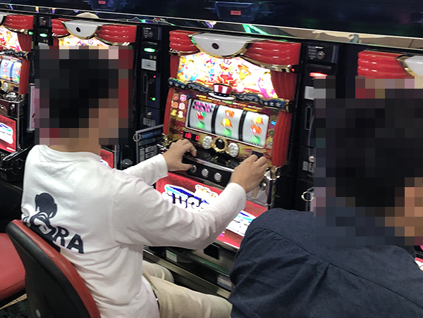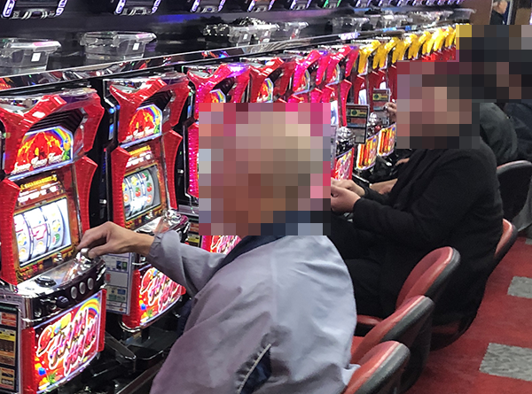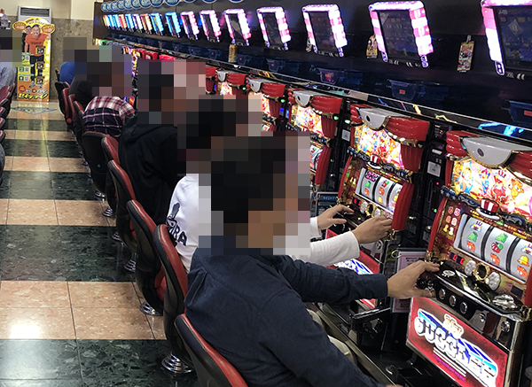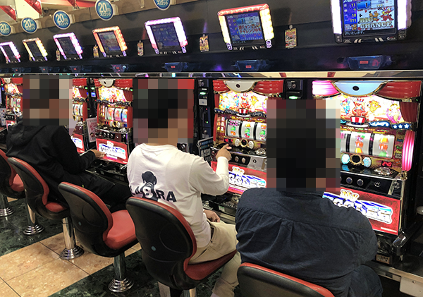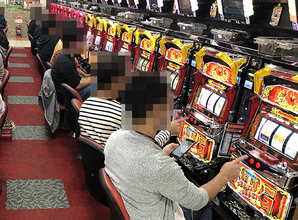 ホールに到着したのは17時を過ぎた頃。パチスロコーナーの状況をうかがうと、さまざまな機種に活躍をみせるプレイヤーの姿があった!!