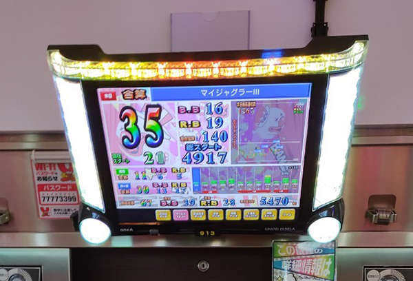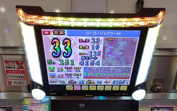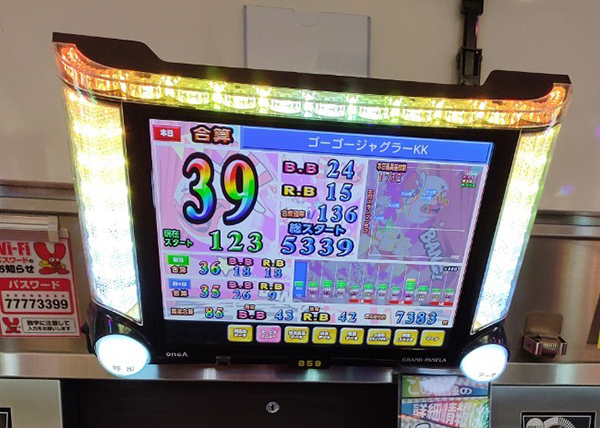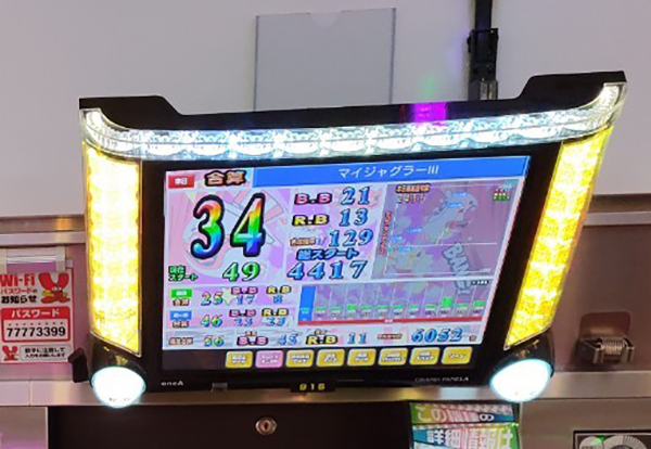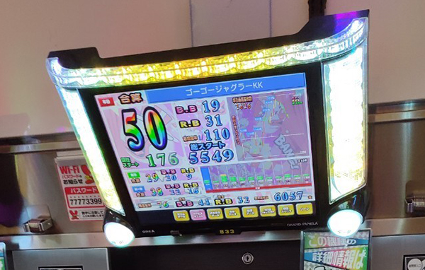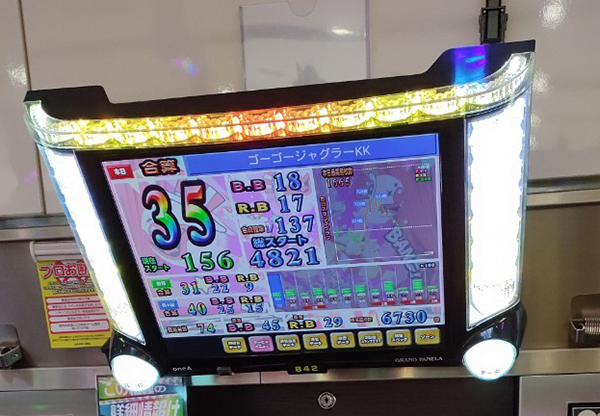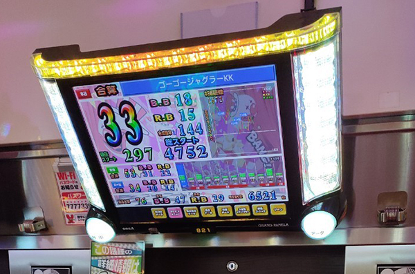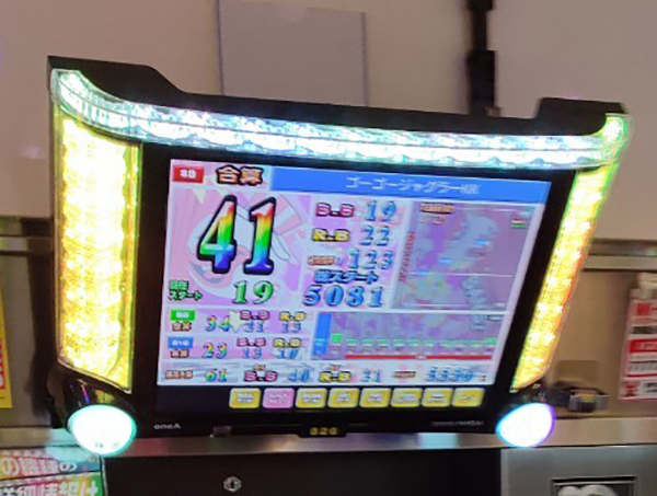 18時の時点で10台以上が30回以上のボーナスを獲得。4台のボーナス合算確率は1/120オーバーと、設定6の数値を上回っていた。