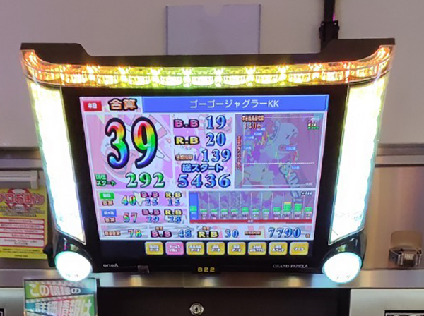 BIG19回・REG20回やBIG18回・REG17回など、BIGとREGの比率に差がない台も確認している。