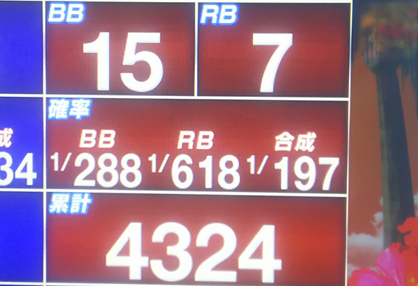 ボーナスを獲得する回数は増加するも、消化ペースを維持できていたおかげで、15時頃には4300Gを通過した。