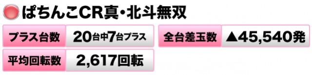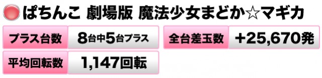8台中5台がプラスで全台差玉数は+25,670発だった。