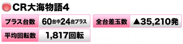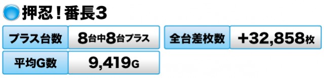4台中3台がプラスで全台差枚数は+7,388枚だった。