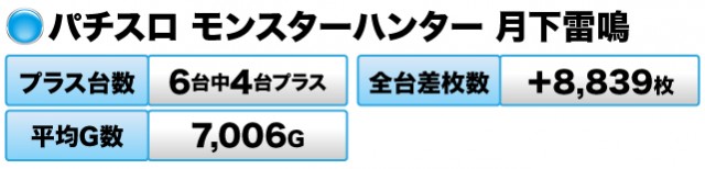 その他では、『パチスロ モンスターハンター 月下雷鳴』 、『マジカルハロウィン6』が活躍していた。