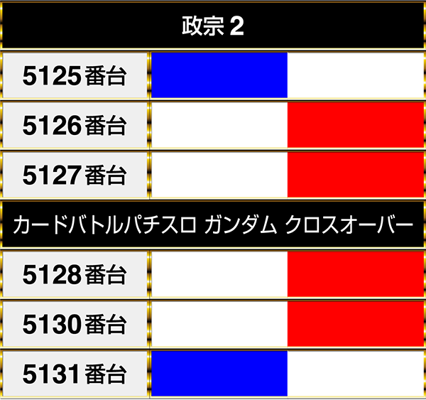 『政宗2』の2台が『カードバトルパチスロ ガンダム クロスオーバー』の2台と連なってプラスpt!!