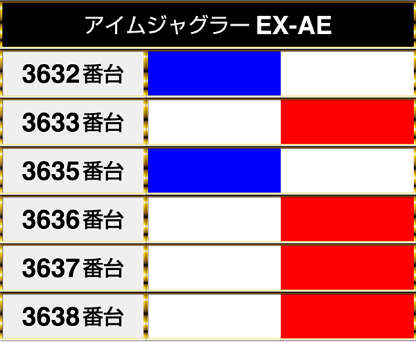 『アイムジャグラーEX-AE』は3台が固まってプラスptを記録!