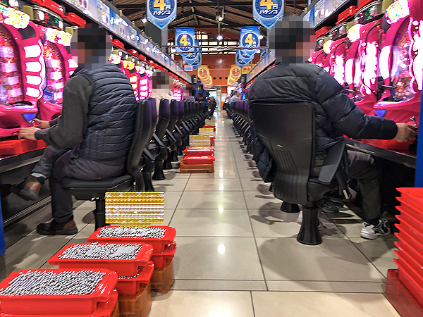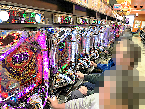 100円/89玉パチンコをチェックすると「CRJ-RUSH4 RSJ」や「PフィーバーアクエリオンW 最終決戦ver.」の盛り上がりが大きい。シマ全体がプレイヤーの熱気に包まれていた。
