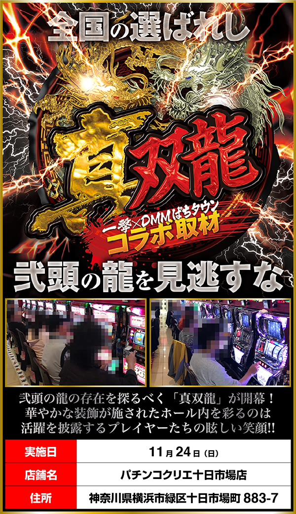 いくつものステキな要素がある「パチンコクリエ十日市場店」で、入店してから退店するまでにたくさんの笑顔と出会えた「真双龍」となった。