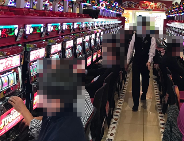 ひときわ明るい雰囲気を感じたのはパチスロコーナー。定番機種の支持が厚く、空き台を探すように歩いている姿がみられるほどに盛り上がっていた。