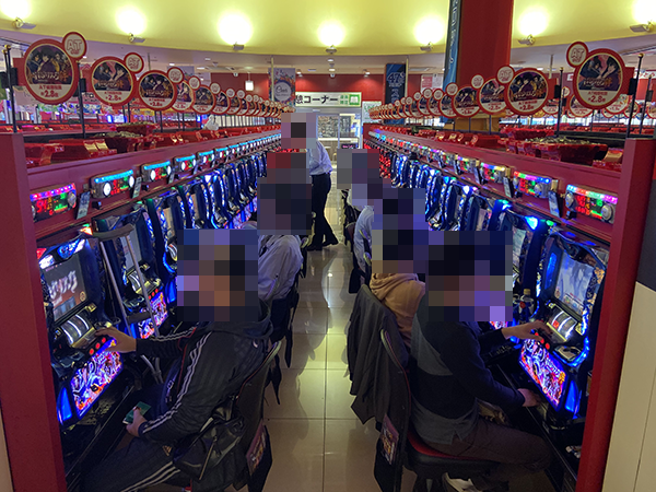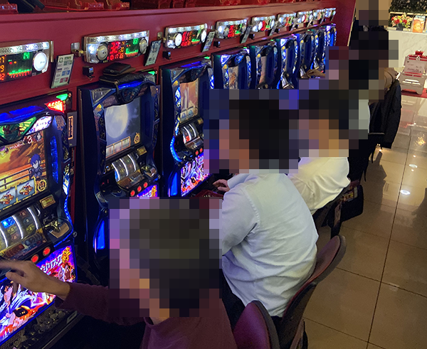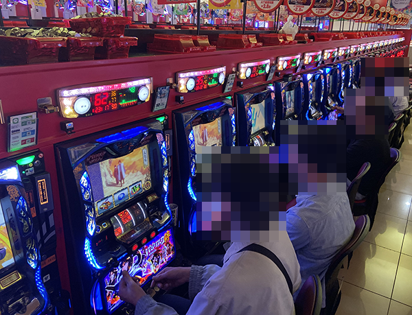 パチスロコーナーには有意義な時間を過ごせているようなプレイヤーがとくに多い。スタッフと談笑している光景もみられ、随所から楽しげな雰囲気が感じられた。
