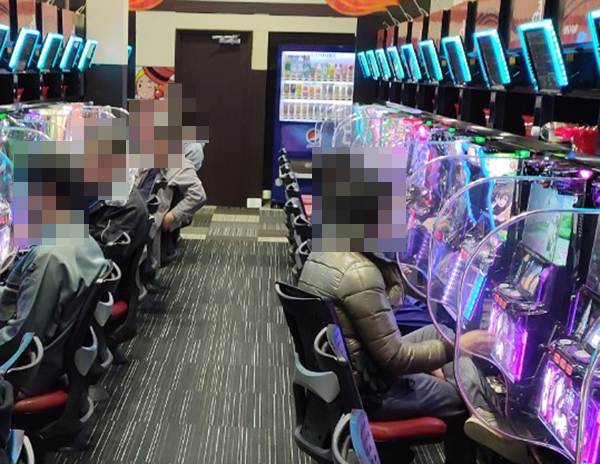 パチスロコーナーに楽しげなプレイヤーがひときわ多く、明るい表情をみせながらレバーを叩いていた。