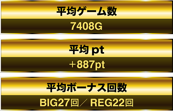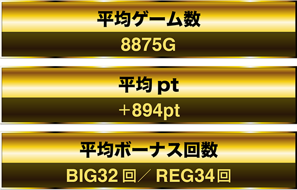4台中2台はREGがBIGの回数を上回り、BIG17回・REG23回とBIG19回・REG20回を記録していた。