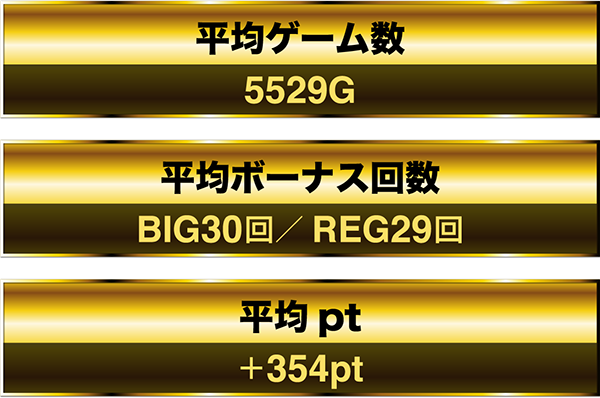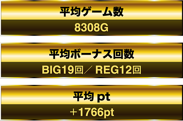 2台は50回を上回り、1台はREGがBIGの回数より多く、もう1台はバランスよくボーナス回数を伸ばしていた。