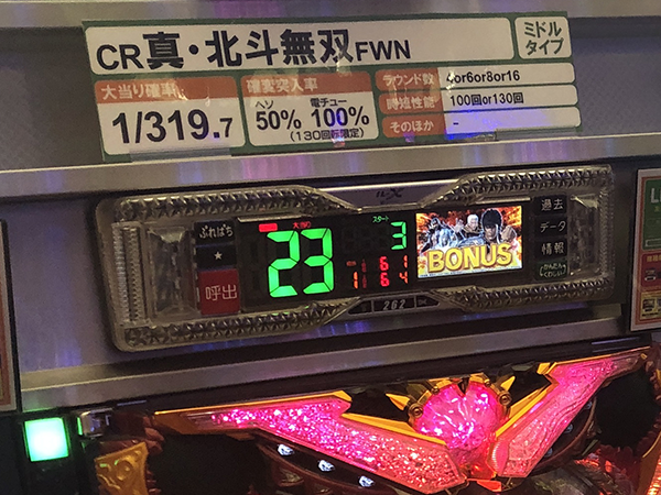 盛況となっている機種はいくつもあったが、とくに印象に残っているのは「ぱちんこCR真・北斗無双」。プレイヤーたちの活躍によって、主役級の存在感を放っていた。