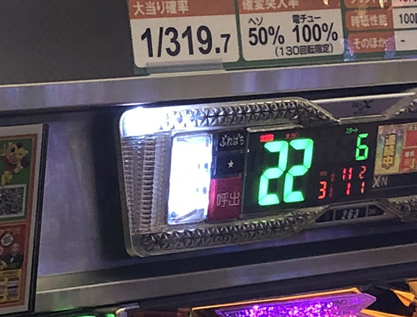 設置台数は22台で、滞在時に稼働していたのは17台。シマの右をみても、左をみても、楽しそうなプレイヤーが目に飛び込んでくる状況であった。