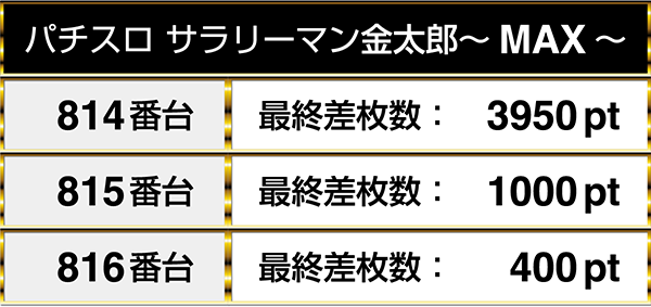 3000ptオーバーの台があった『パチスロ サラリーマン金太郎~MAX~』は、3台並びでプラスpt!!