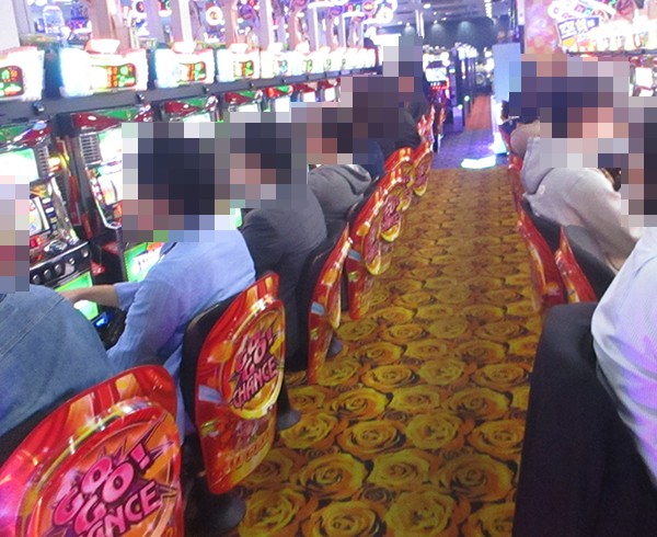 時間が経つとともに空き台が埋まり、稼働率は100%。遊技を満喫するような姿が増えたことで、にぎわいはさらに大きくなっていった。
