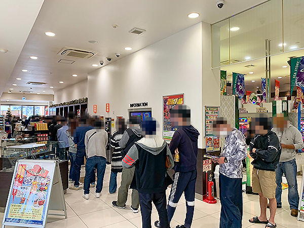 取材当日は新台入替ということもあり、14時に抽選を開催。新台での遊技を楽しみに待つプレイヤーが約60人集まっていた。