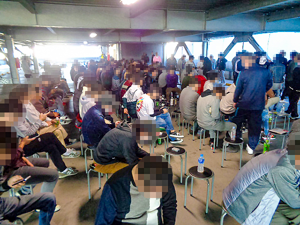 開店前から500人以上ものプレイヤーが集結。会話を楽しみながら入店を待つ、実に和やかなシーンを目にしている。