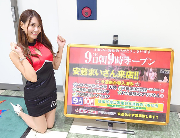 「ドムズ岩国店」と「ラッキープラザ」の両方で、ご挨拶を披露していたまいちゃん。元気いっぱいな姿もかわいらしく、プレイヤーたちも癒されていたことだろう。