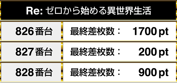 『Re:ゼロから始める異世界生活』も3台が固まってプラスptとなり、1台は1000ptを上回る!
