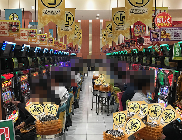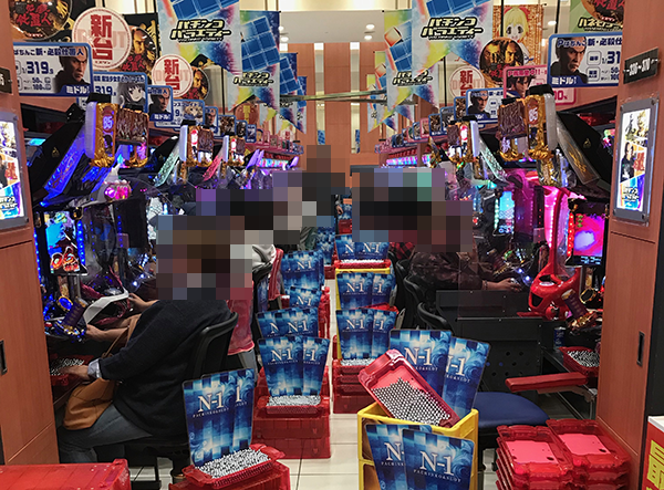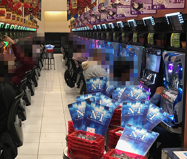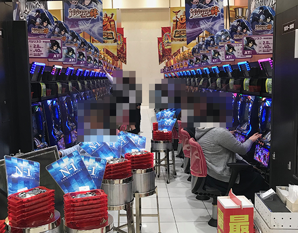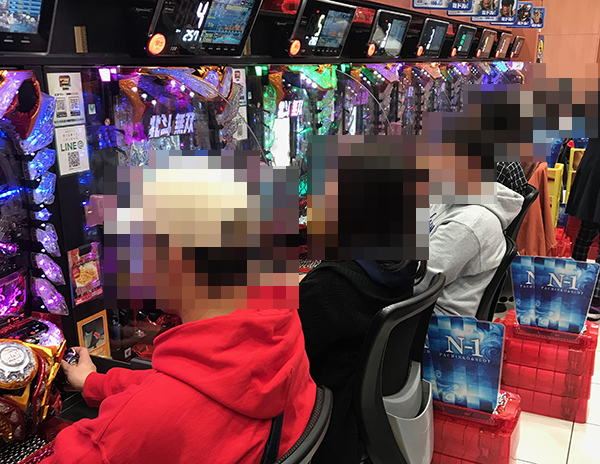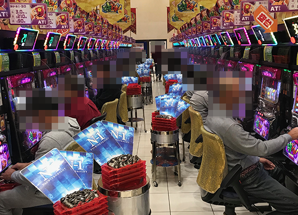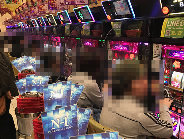 パチンコのにぎわいも大きく、いくつもの機種に活気のある光景が広がっていた。