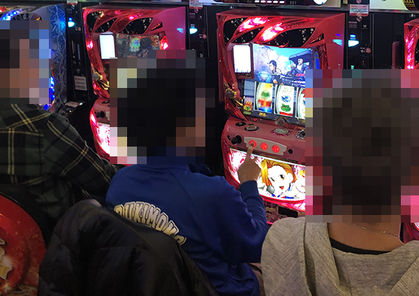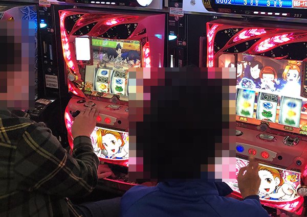 設置台数が多い機種から1台設置の機種まで、店内のさまざまな場所に遊技を楽しむプレイヤーの姿があった!