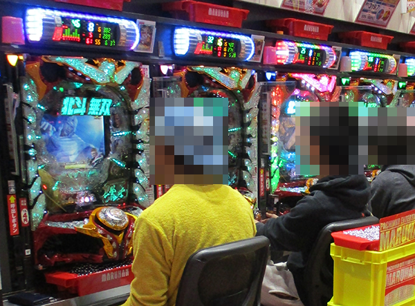 滞在時はほとんどの席が埋まっており、「ぱちんこCR真・北斗無双」の支持率は高い。うれしそうなプレイヤーがズラリと並び、ひときわ目立っていたことも覚えている。