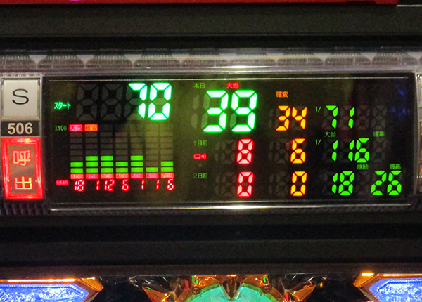また、遊技中のプレイヤーが席を離れる場面はなく、滞在中はつねに活況。にぎわうホール内でも主役級の存在感を放っていた。