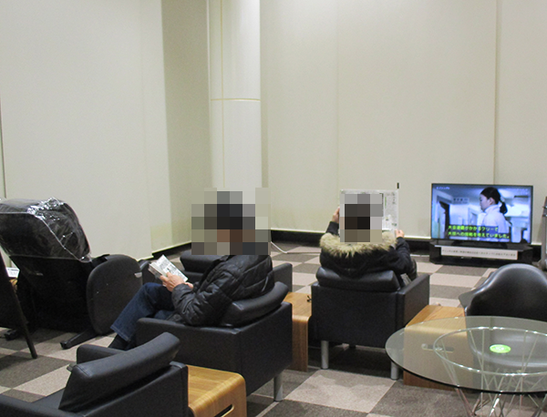レストスペースは落ち着いた雰囲気であり、居心地のよい空間となっている。新聞を読んだり、テレビをみたりと、しっかりと休憩できるように思えた。