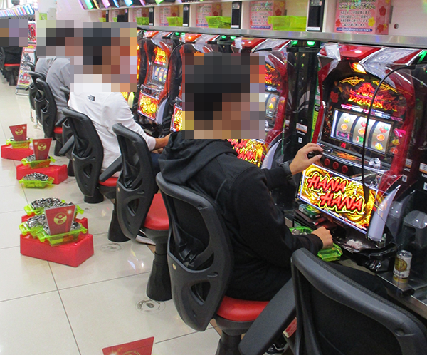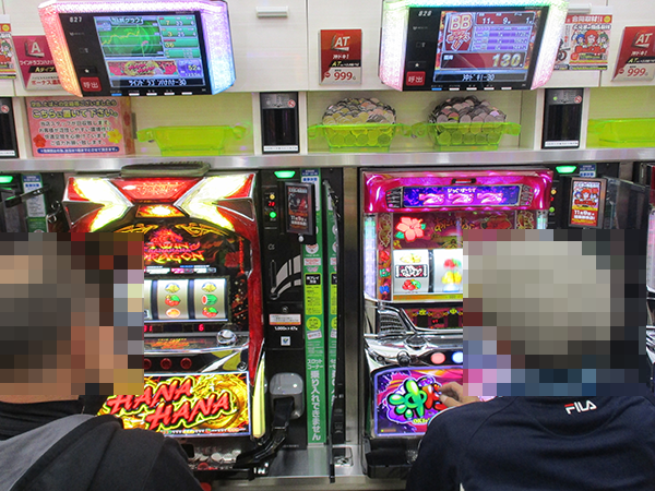 1000円/178枚パチスロの「HEY!鏡」や1円パチンコの海物語シリーズなどに、活気のある光景が広がっていた。