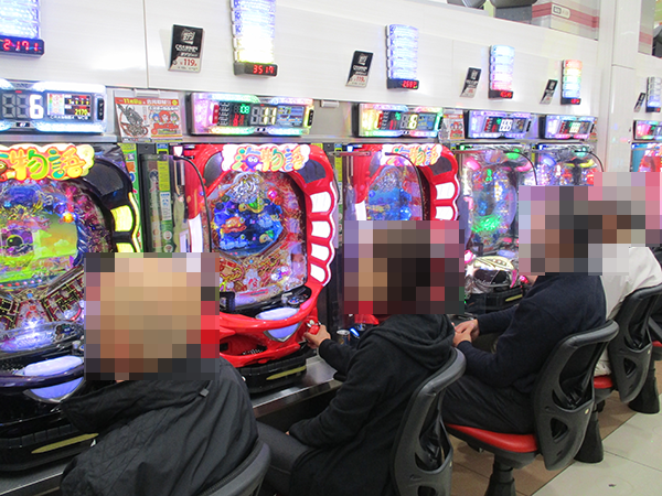 低貸し玉コーナーで遊技をおこなっているプレイヤーも多数。
