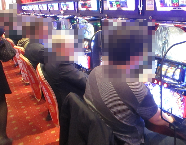 遊技をおこなっている姿は老若男女さまざまだが、レバーを叩きながら明るい表情をみせているところは共通。機種の魅力を存分に味わえていた様子だ。