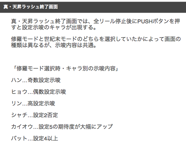 ▼「パチスロ北斗の拳 天昇」設定推測ポイント▼
