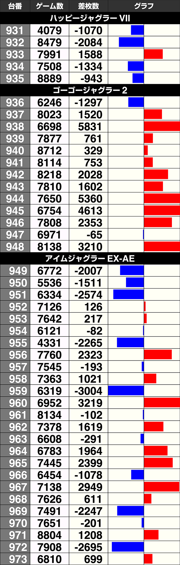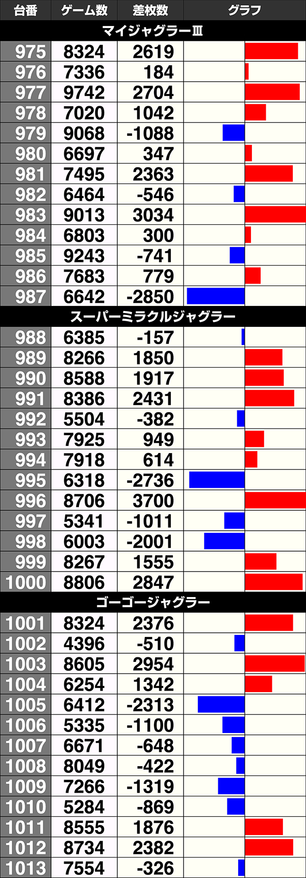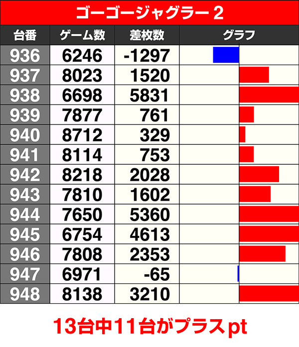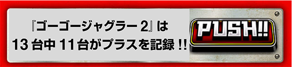 『ゴーゴージャグラー2』は13台中11台がプラスで、2台が5000ptオーバー。