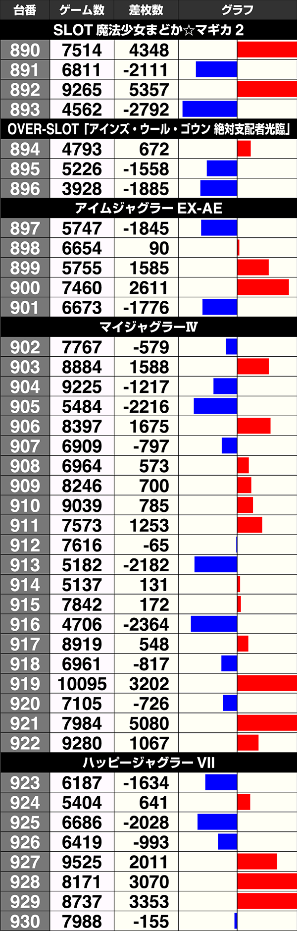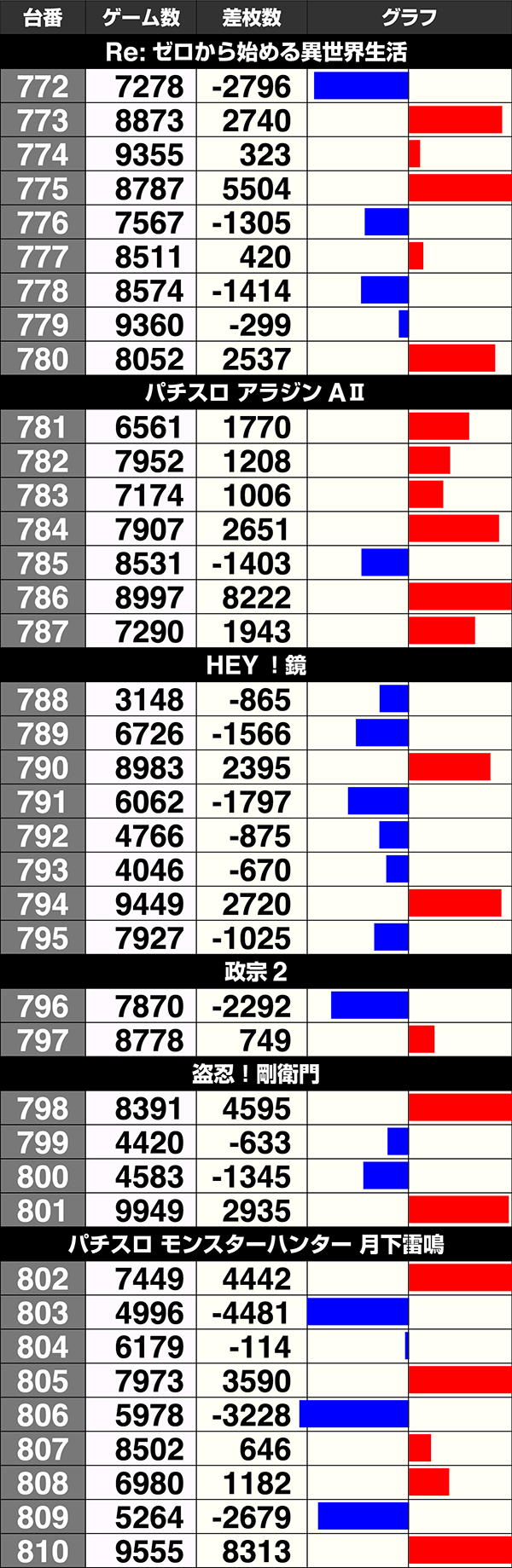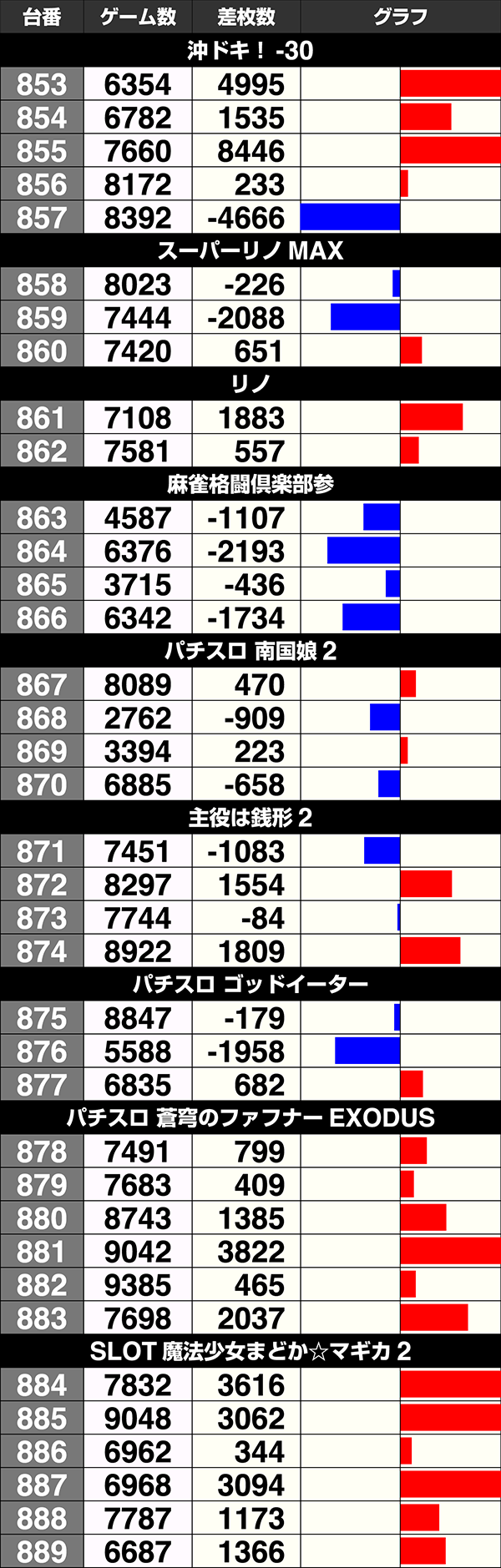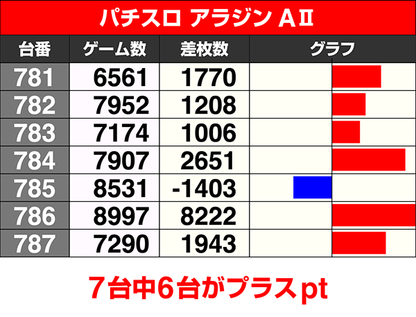 2台以上設置されている機種のうち、5機種が全台プラスを記録した。
