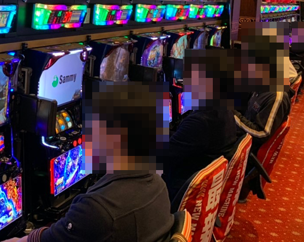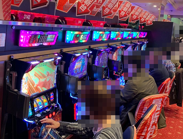 遊技をおこなっているプレイヤーたちは、いずれも楽しそうにレバーを叩いていた。