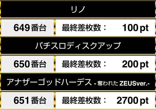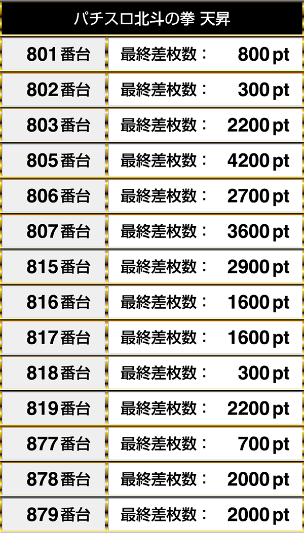 最終的には4箇所に3台以上の並びでプラスptとなる場所があり、そのうちの8台が2000ptオーバー!!