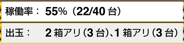 ホール内に足を踏み入れると、高稼働となっている機種が多く、どのシマも楽しげな雰囲気に包まれていた。