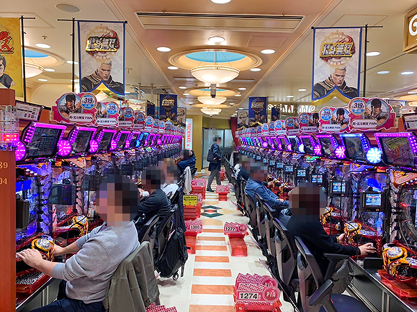 16時過ぎの4円パチンコでは「CR真・花の慶次2〜漆黒の衝撃 2400」や「ぱちんこCR真・北斗無双」が盛況で、華やかな光景をあちこちで目撃している。