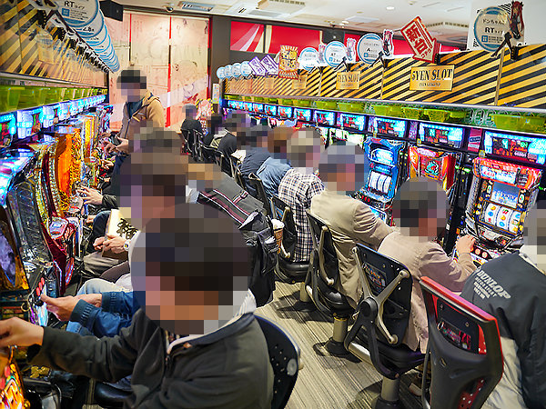 5円パチスロの様子をうかがうと、様々な機種で楽しそうにレバーを叩くプレイヤーがそこかしこに見受けられた。