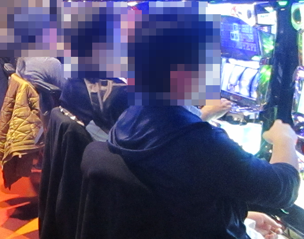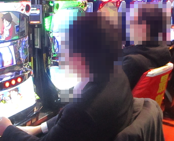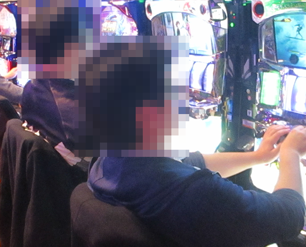 パチスロは2つのフロアに設置されており、どちらでもうれしそうに遊技をおこなうプレイヤーを目にしている。支持されている機種は、最新台から定番機種にいたるまでと幅広く、随所にイキイキとレバーを叩いている姿があった。
