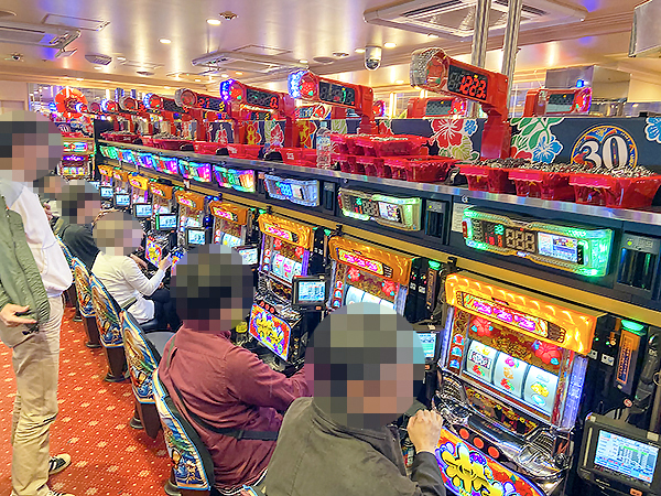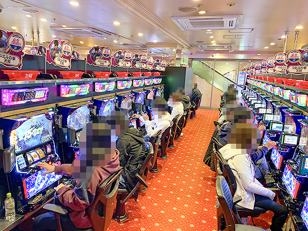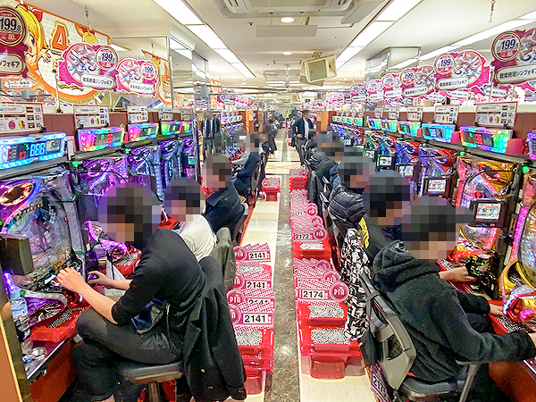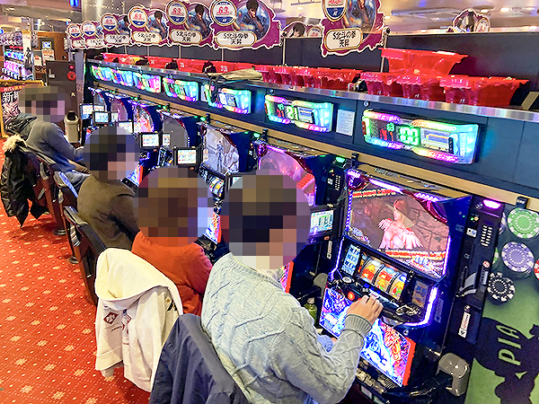 1000円/186枚パチスロの支持も厚く、様々な機種で楽しそうにレバーを叩くプレイヤーが見られた。