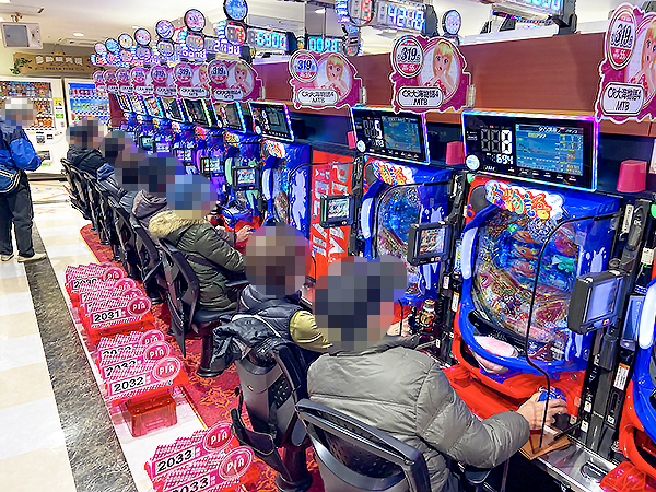 「CR大海物語4」や「ぱちんこCR真・北斗無双」の盛り上がりも大きい。各シマに微笑ましい光景が広がっていた。