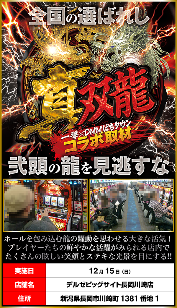 白と黒のシックな外観も特徴的な「デルゼビッグサイト長岡川崎店」で「真双龍」を実施。