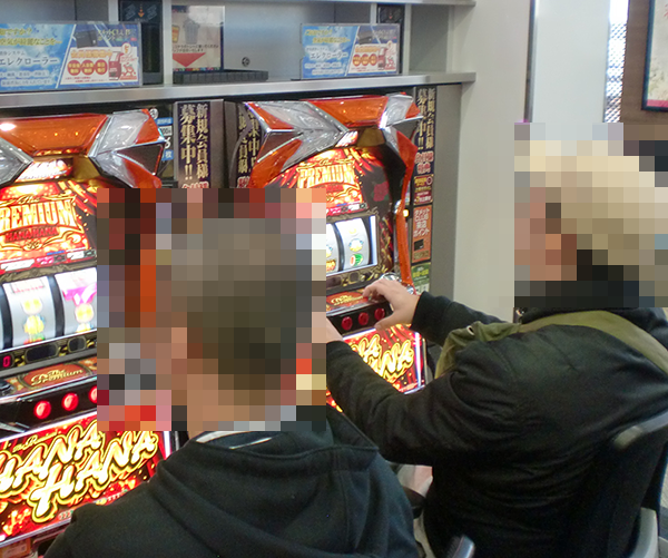確認時に埋まっていたのは5台中3台と空き台はあったが、全員から明るい雰囲気が感じられることで、「プレミアムハナハナ‐30」は稼働率以上の存在感を放っていた。