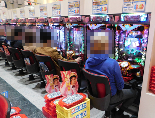 16時頃にパチンココーナーの状況をうかがうと、スペックを問わずに、さまざまな機種が好評。