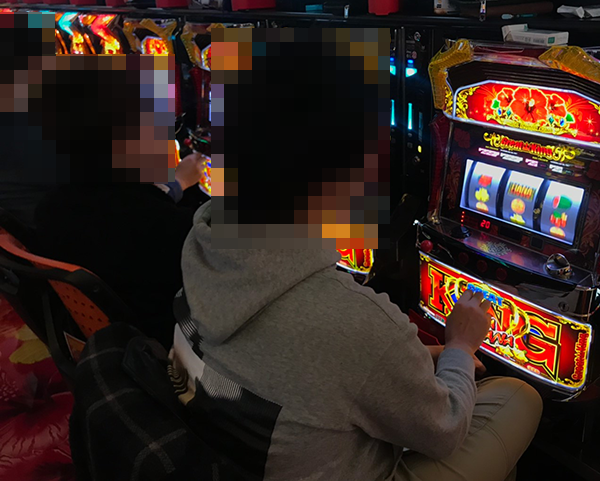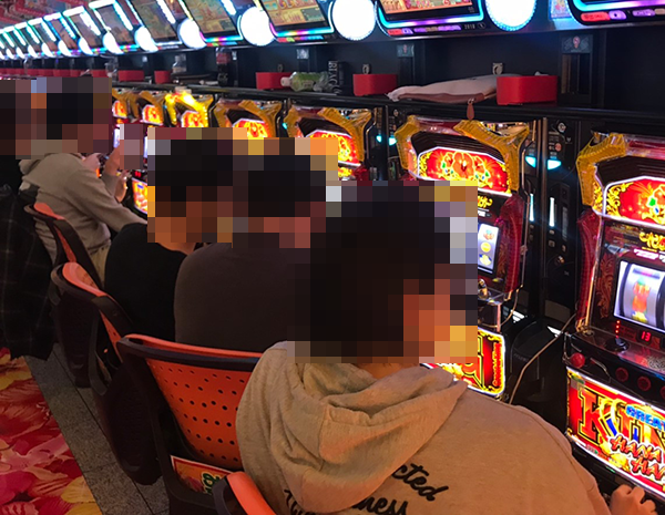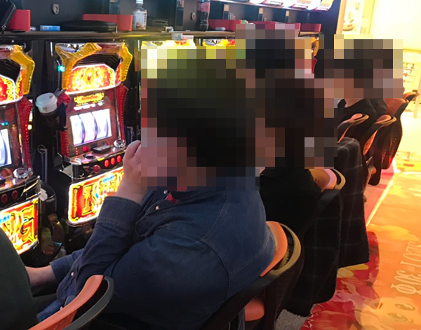 パチスロコーナーとパチンココーナーの両方で機種の魅力を味わうような姿を確認。笑みを浮かべている様子を眺めながら歩いていると、どんどん明るい気分になっていった。