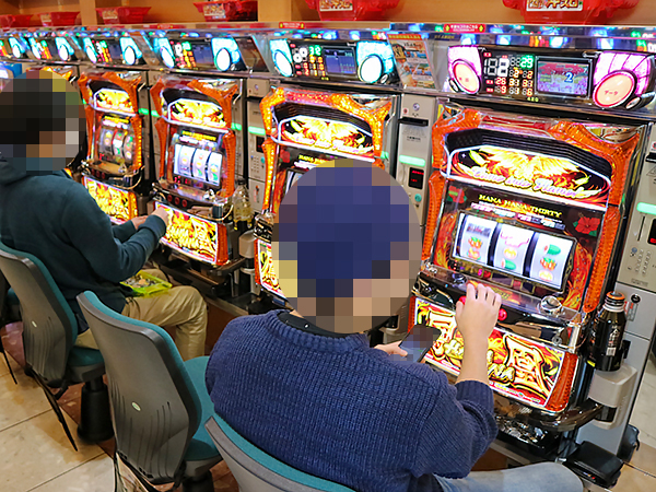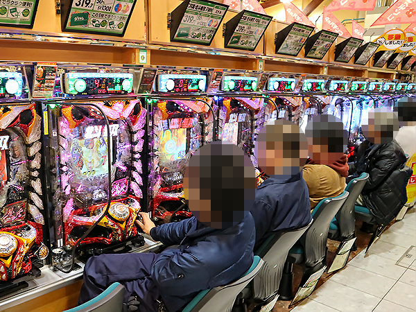 取材時は既に多くのプレイヤーが集結し、パチンコ・パチスロを問わずにぎやかな状況となっていた。